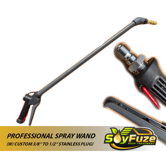 Heavy Duty 24″ plus wand. Replace just the widely available handle as needed. Durable brass spray tip that allow anywhere form a mist cone to a stream for harder to reach peaks and valleys. Only difference, this wands comes with a custom (no-leak) 1/2″ to 3/8″ stainless plug. This allows you to quick connect your spray wand on and off as needed. This really comes into play if you design or utilize an extension wand for really hard to reach unwalkable peaks.